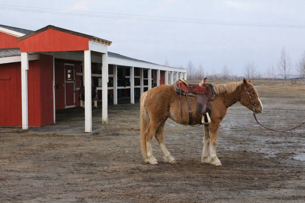 Peter has been lightly started under saddle. Because of his young age, he is currently only ridden at the walk and some trot while he continues to grow and develop. He has been ridden indoors and worked about once a week, helping him build confidence while keeping his training positive and relaxed.