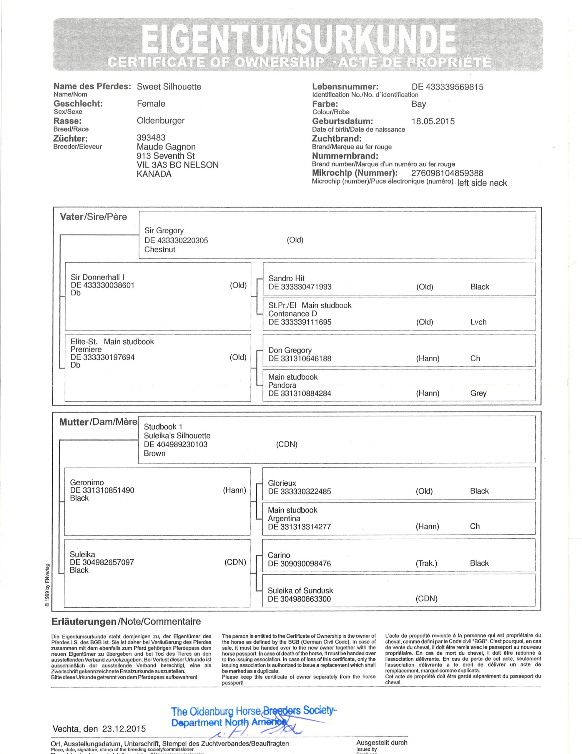 Quiver is a beautiful Oldenburg mare. She made a wonderful mark in the dressage ring this summer, and we have plans to breed her to our standing stallion, Le Vemmion. The foal will be for sale. She is 8 yo. Foal Date: 05/18/2015 Share this post Share on FacebookShare on Facebook Share on XShare on X Share on WhatsAppShare on WhatsApp Project navigationPreviousPrevious project:GoliathNextNext project:Lil’ Pete (Peter)