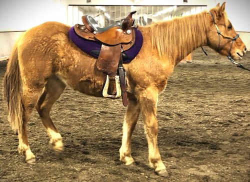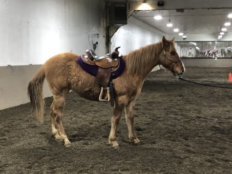 Now being ground worked under saddle. Not being ridden yet but doing well with his ground & saddle training.