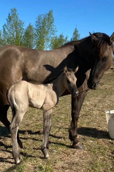 Silverbell SMR Jaz Candy Stripe “Silverbell” foaled 04/28/2016 is a registered AQHA mare by IJ Dusty’s Doc Tivio of a Jaz Poco Mouse mare. Silverbell was born and raised in Alaska and is broke to ride both English and Western. Her sweet disposition, beautiful grulla coat, and rideability make Silverbell a barn favorite. She is currently being bred.