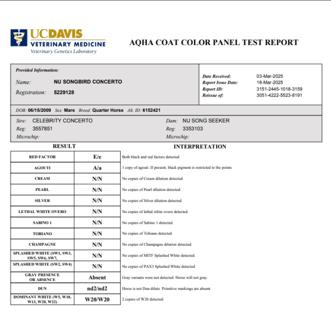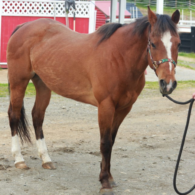 This bay is as friendly as she is sweet & gentle. She can be ridden, but hasn’t been ridden in quite some time. She is 14.2hh. She currently has 2 foals out our registered AQHA stallion Clowd 9. She is 5 panel negative, has her color panel & her parentage.
