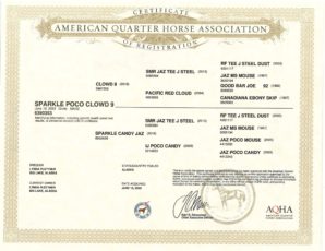 Out of Sparkle Candy Jaz and by our Stallion Clowd 9.