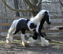 Alaska Horse Ranch is proud to introduce our Gypsy Vanner stallion, Westmoreland Peppermint. Peppermint is a 2008 piebald stallion, sired by Blue, out of Westmoreland Tic Tac. He stands at 14hh tall, is Homozygous Tobiano, and Homozygous Black.