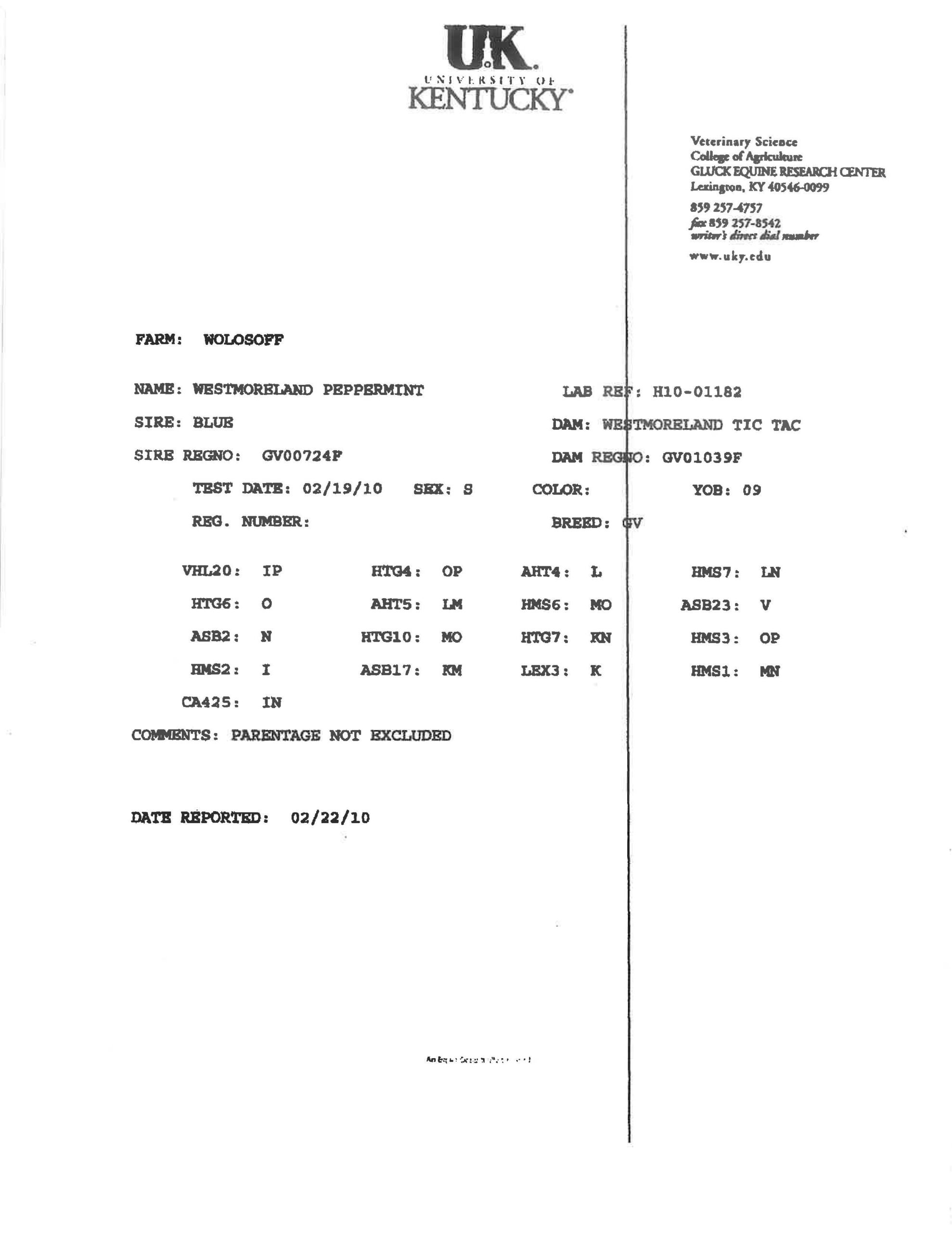 Standing at Stud: Westmoreland Peppermint